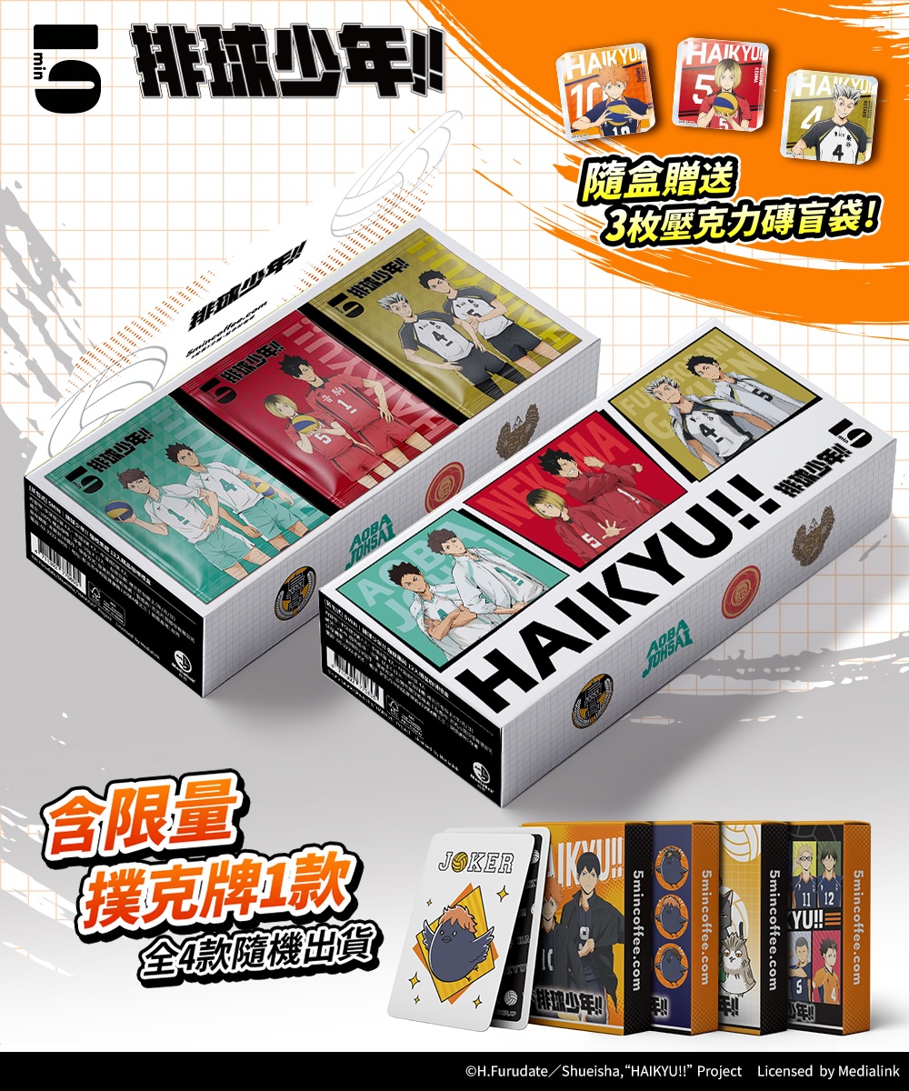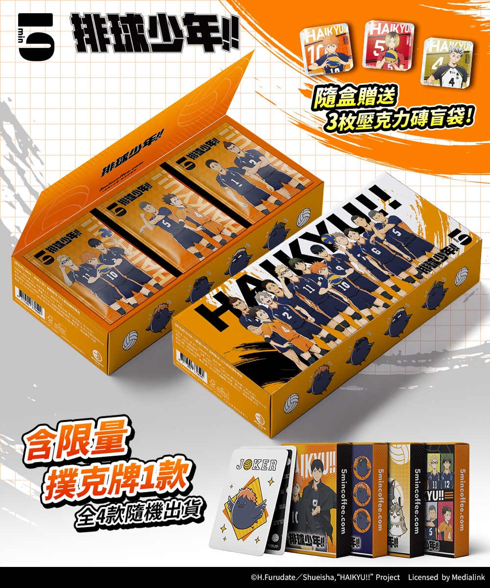 5min | 排球少年!! 12入精品咖啡禮盒(隨盒附贈3枚壓克力磚)任選1款、《排球少年!!撲克牌》1款,隨機出貨。